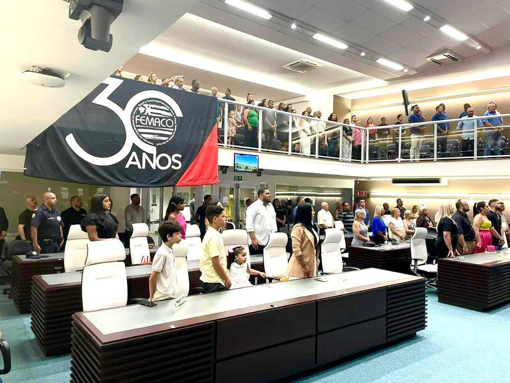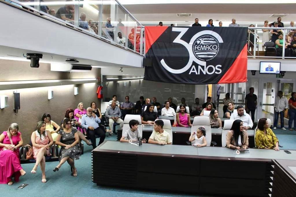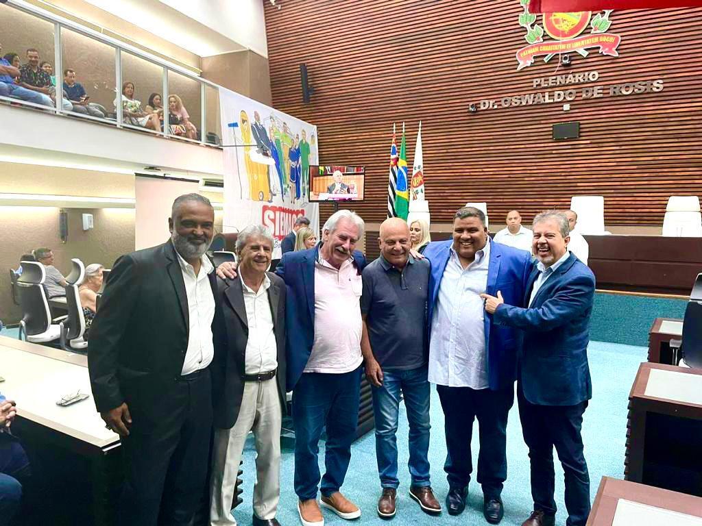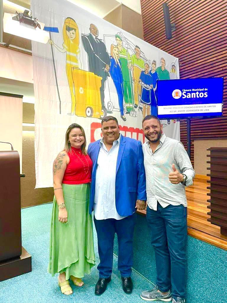 Nesta última sexta-feira (24) o Presidente Jhonatan Moura participou da cerimônia de entrega de título de cidadão emérito da cidade de Santos a André Domingues de Lima, presidente do Siemaco da Baixada Santista. Essa foi uma homenagem da Câmara Municipal da cidade de Santos para o dirigente sindical pelos serviços prestados à comunidade de Santos.