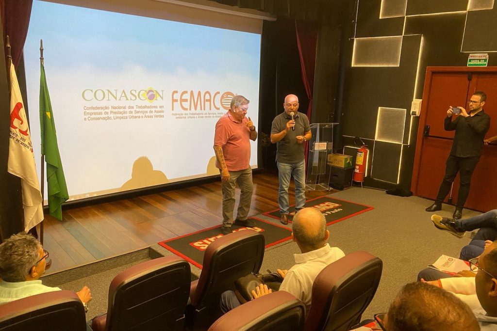 Na manhã da última terça-feira (04), o presidente do Siemaco Guarulhos, Jhonatan Moura, esteve no encontro organizado pela Femaco e a Conascon, que discutiu o futuro do sindicalismo e novas propostas de estrutura sindical para os próximos anos, com o consultor e ex-diretor do Dieese Clemente Ganz Lúcio a frente do tema.
