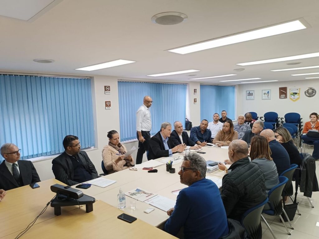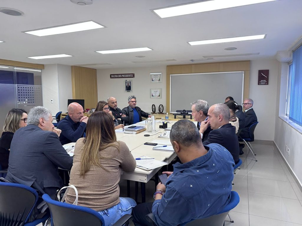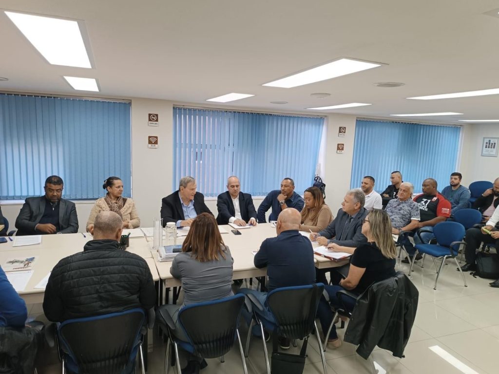 O presidente do Siemaco Guarulhos Jhonatan Moura, junto da Selur (Sindicato das empresas de Limpeza Urbana do Estado de São Paulo) participa da 1ª reunião de negociações salariais de 2023 para os trabalhadores de grandes geradores de lixo. A assembleia é um processo importantíssimo para debater e estudar melhores condições de trabalho para a categoria.