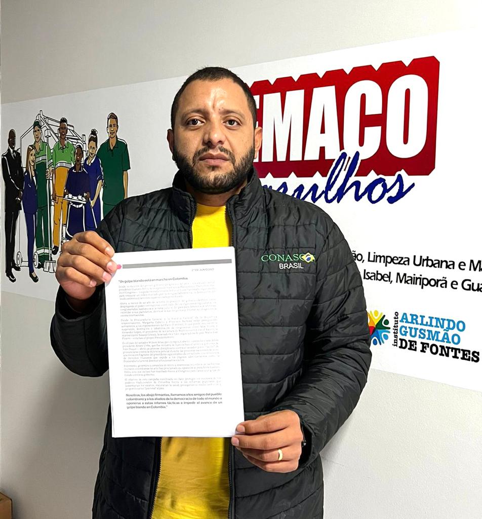 Diante desse cenário, nós, do Siemaco Guarulhos, juntamente com outros sindicatos e organizações brasileiras, nos solidarizamos com o povo colombiano e convocamos todos os defensores da democracia e da justiça social ao redor do mundo a se oporem a essas táticas infames e a impedirem o avanço de um golpe brando na Colômbia.