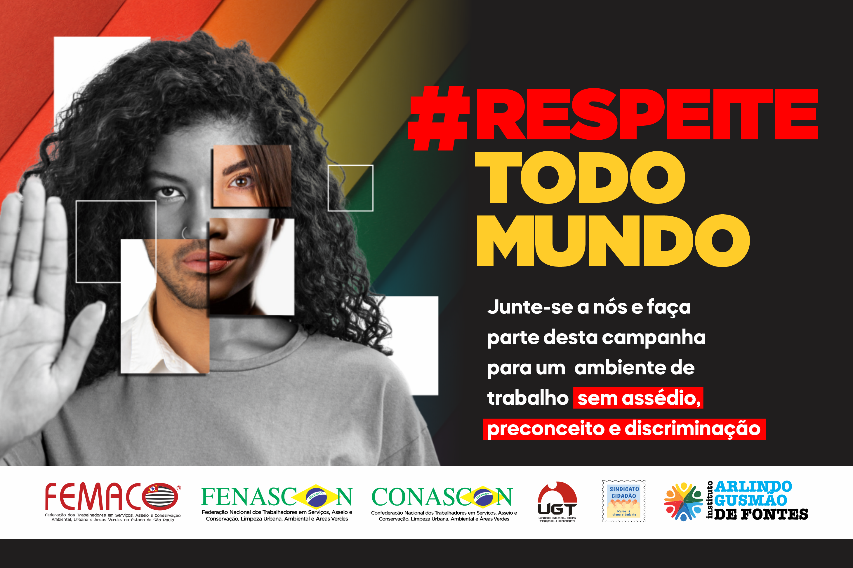 No próximo dia 28 de julho, sexta-feira, às 10h, na Alesp, no Auditório Franco Montoro, acontecerá o lançamento estadual da Campanha “Respeite Todo Mundo”, visando combater os assédios moral e sexual, além das práticas de discriminação e preconceito no ambiente de trabalho.