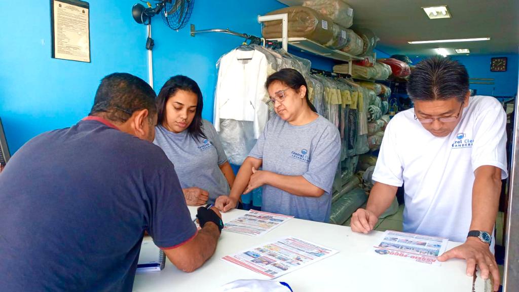 Equipe de assessores do Siemaco Guarulhos realiza entrega do boletim informativo, em diversas lavanderias representadas por nós do Siemaco Guarulhos.