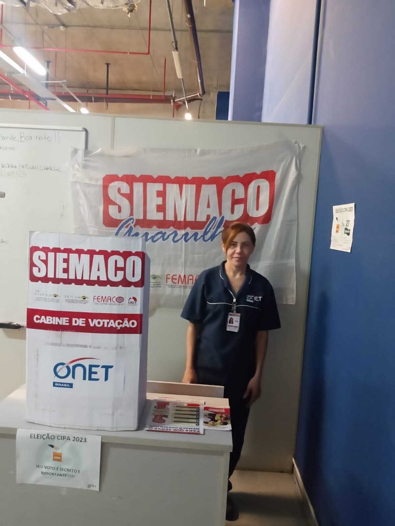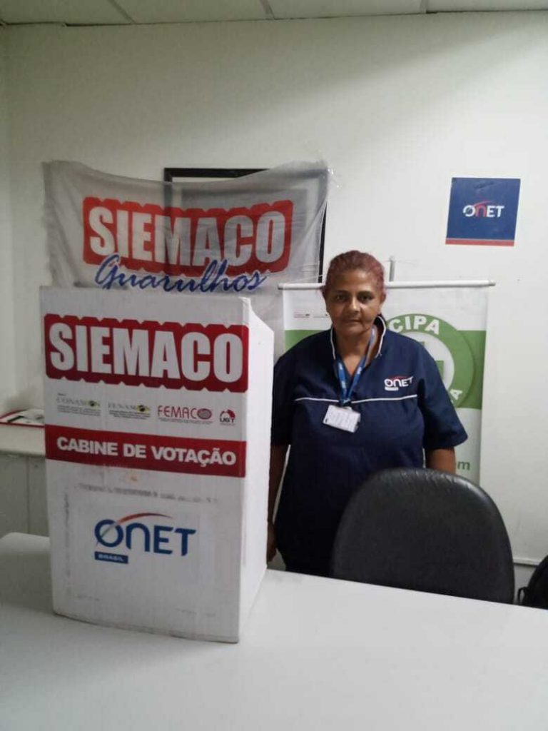 No dia 28 de setembro, os Assessores de Base do Siemaco Guarulhos Renato e Edilene realizaram uma eleição de CIPA (Comissão Interna de Prevenção de Acidentes e de Assédio) na empresa Onet, localizada no Aeroporto de Guarulhos – SP.