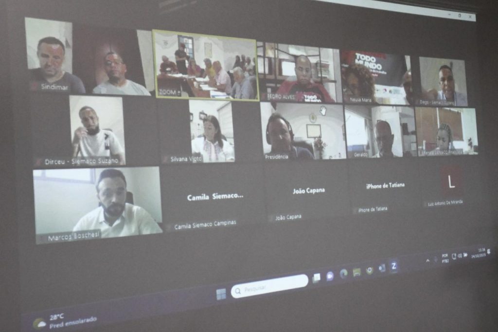 Na última terça (24), o presidente do Siemaco Guarulhos, Jhonatan Moura, esteve junto a FEMACO em uma reunião com os seus sindicatos filiados para discutir a construção da pauta que norteará a Campanha Salarial 2024 dos trabalhadores em asseio e conservação e controladores de pragas, com data base em 1º de janeiro.