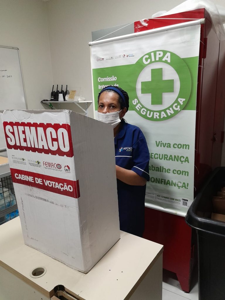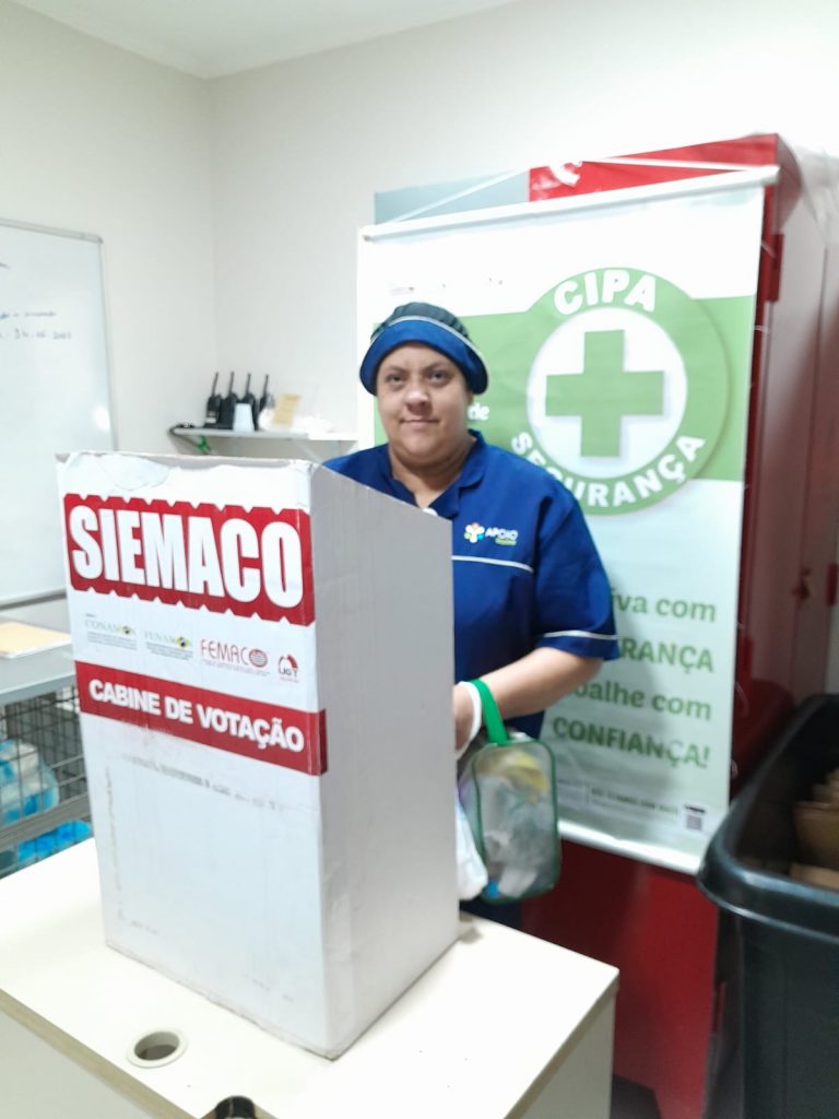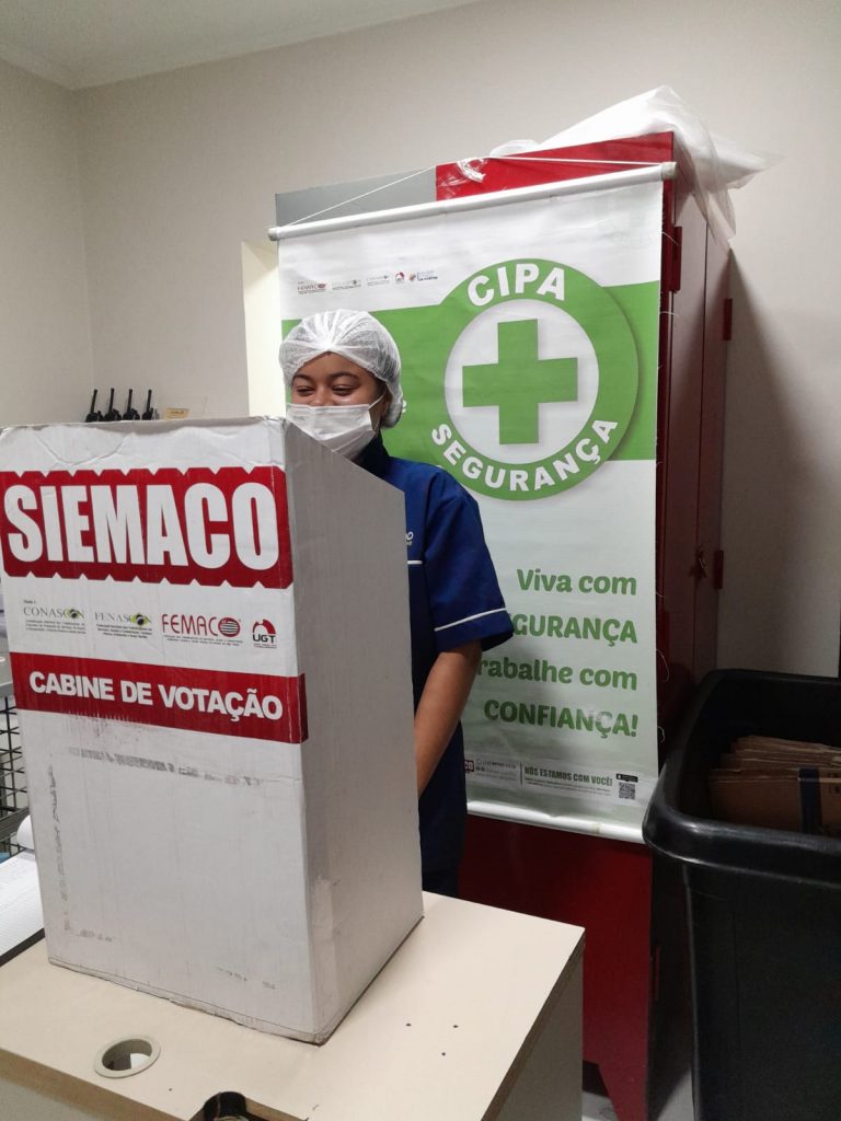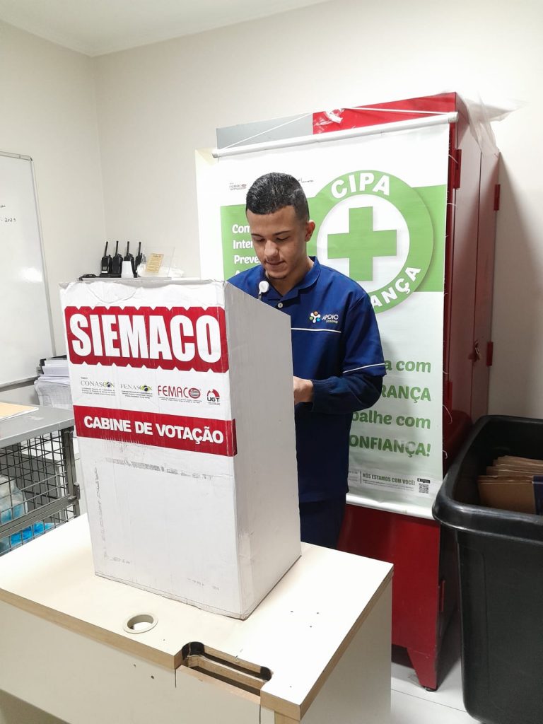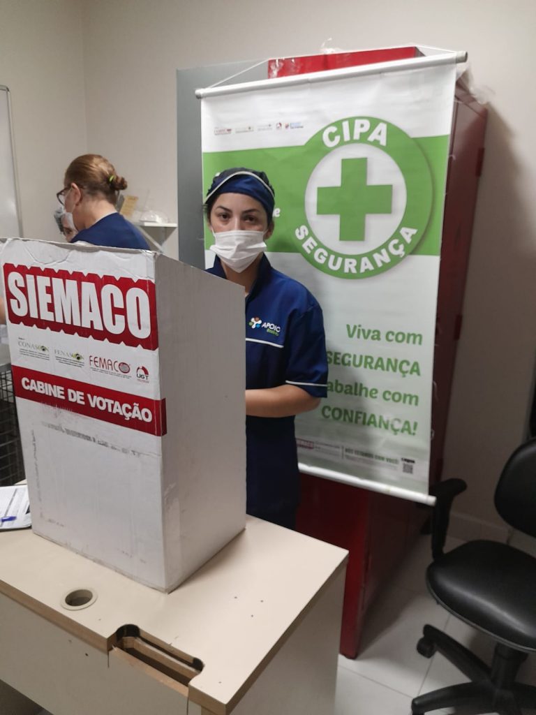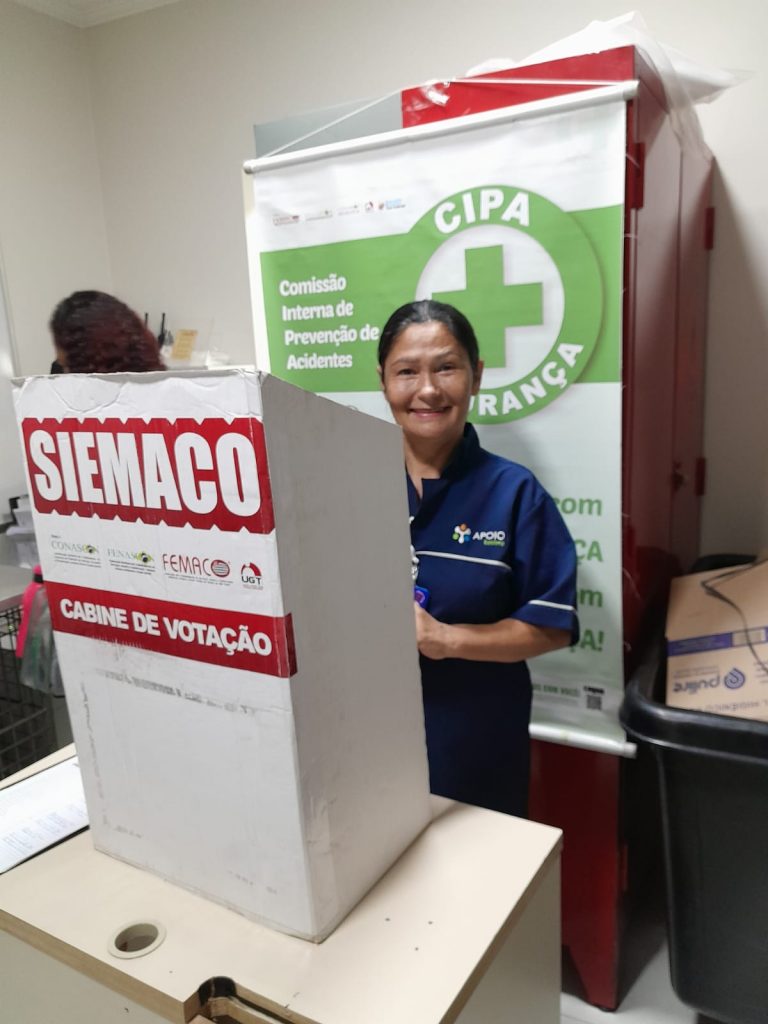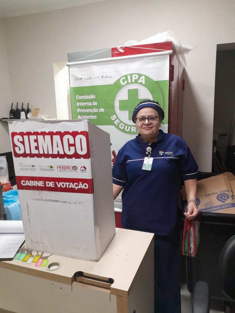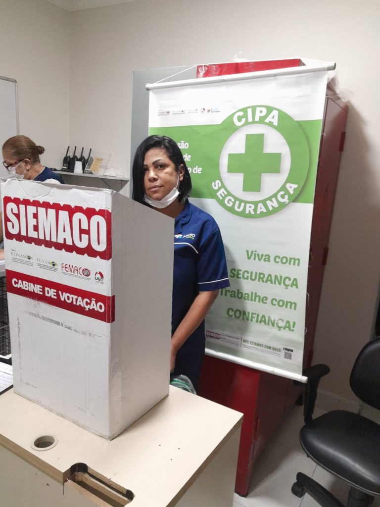 No dia 30 de outubro, os Assessores de Base do Siemaco Guarulhos Renato e Elaine, realizaram uma eleição de CIPA (Comissão Interna de Prevenção de Acidentes e de Assédio) na empresa Apoio Ecolimp, responsável pela limpeza do Hospital Carlos Chagas.