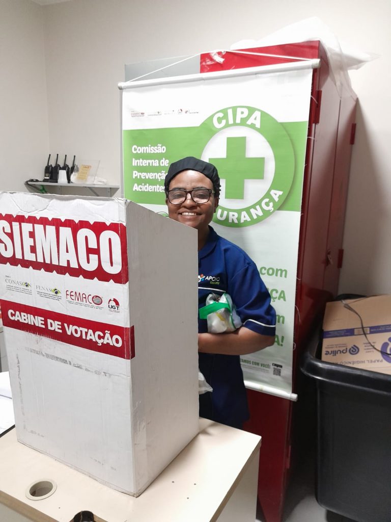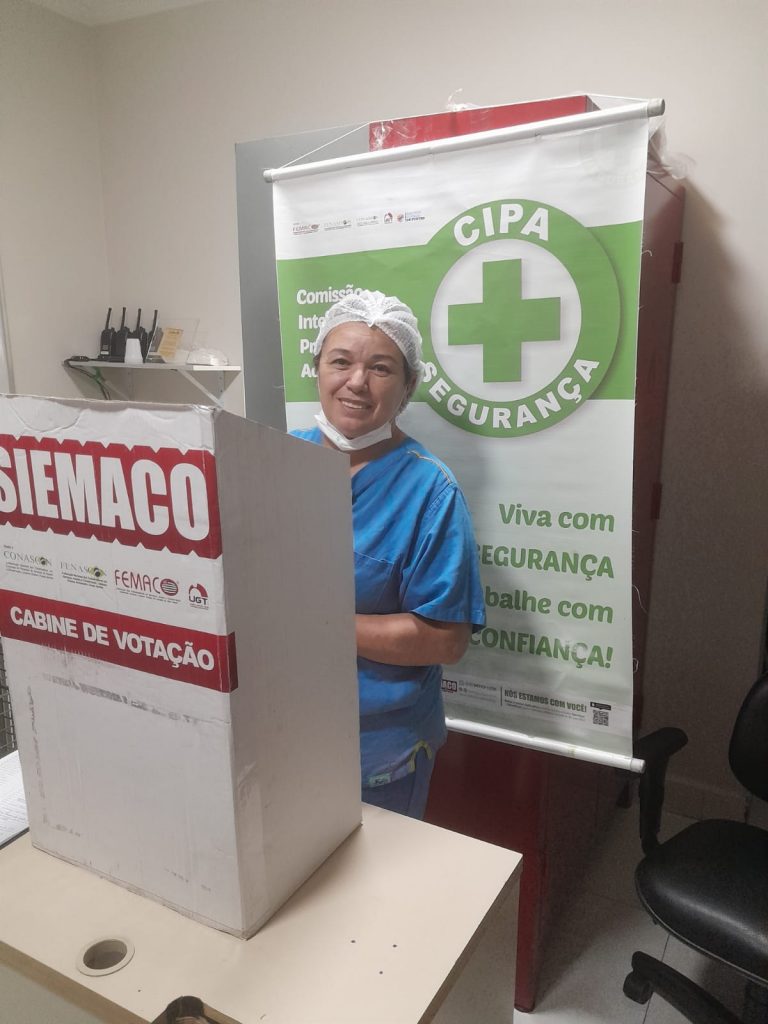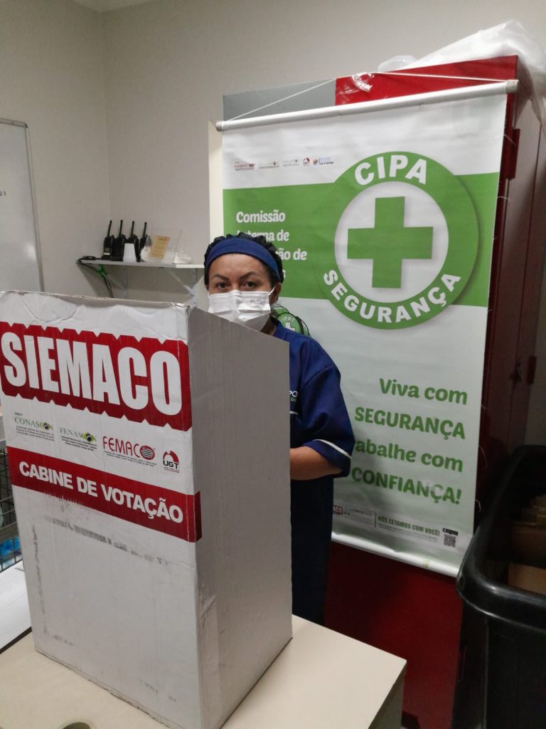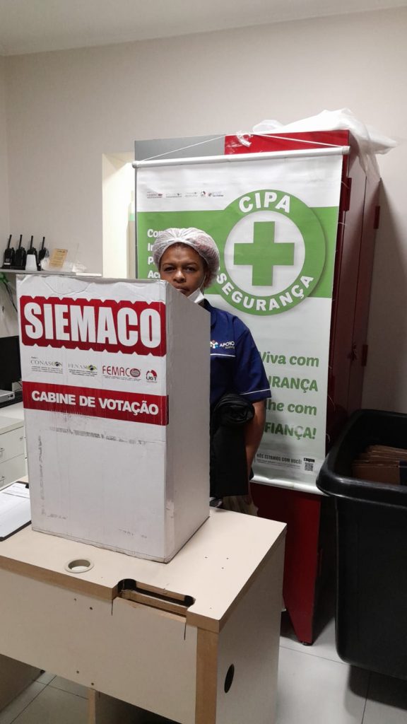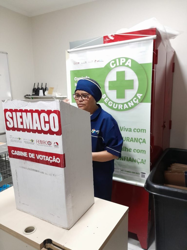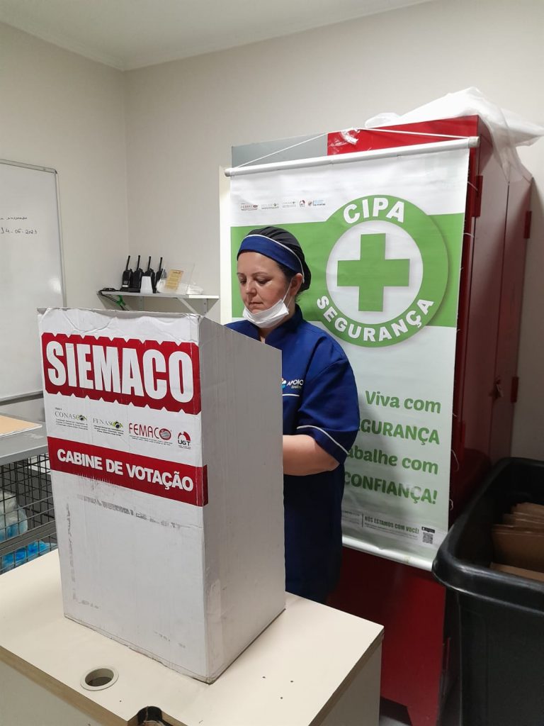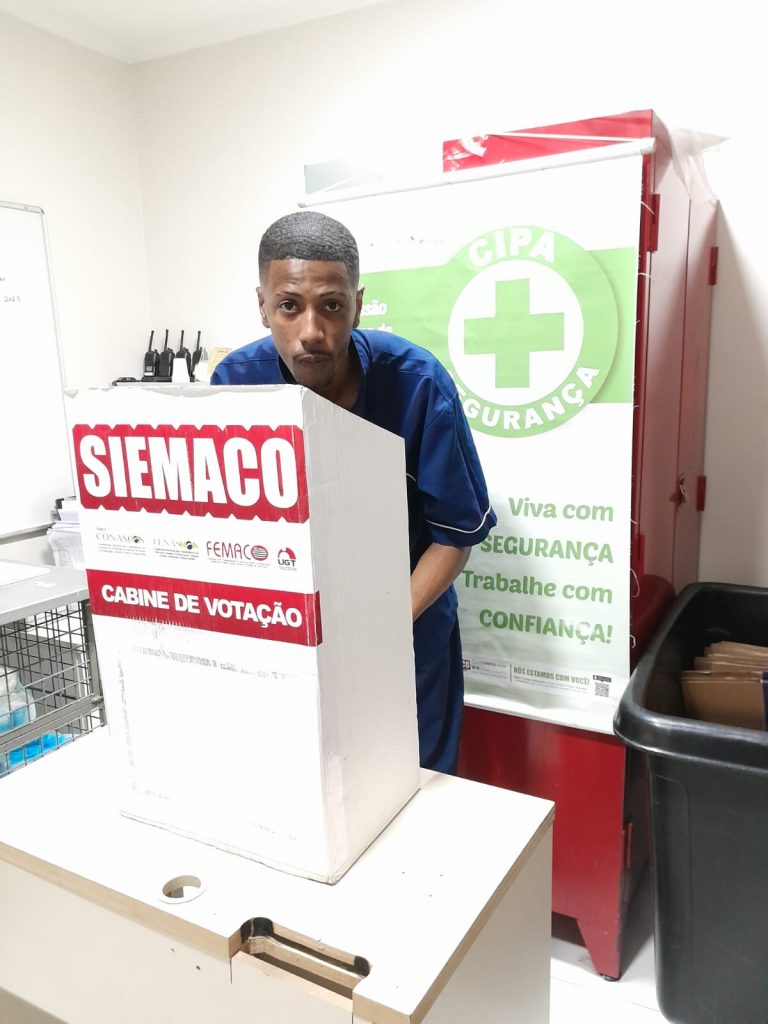 No dia 30 de outubro, os Assessores de Base do Siemaco Guarulhos Renato e Elaine, realizaram uma eleição de CIPA (Comissão Interna de Prevenção de Acidentes e de Assédio) na empresa Apoio Ecolimp, responsável pela limpeza do Hospital Carlos Chagas.