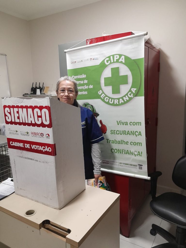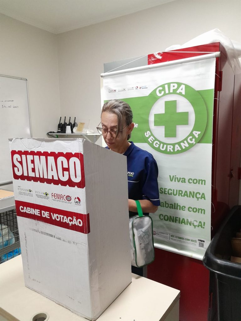 Técnica de segurança responsável pela votação: Rosimeire Rodrigues e responsável de RH Caroline Assunção. Qual é o papel de um “CIPEIRO”? A comissão Interna de Prevenção de Acidentes – CIPA – tem como objetivo a prevenção de acidentes e doenças decorrentes do trabalho, de modo a tornar compatível permanentemente o trabalho com a preservação da vida e a promoção da saúde do trabalhador. . Valorize sua categoria, baixe o aplicativo do Siemaco Guarulhos e se torne um sócio sem sair de casa.