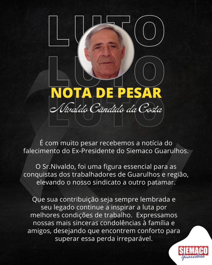 É com muito pesar recebemos a notícia do falecimento do Ex-Presidente do Siemaco Guarulhos.