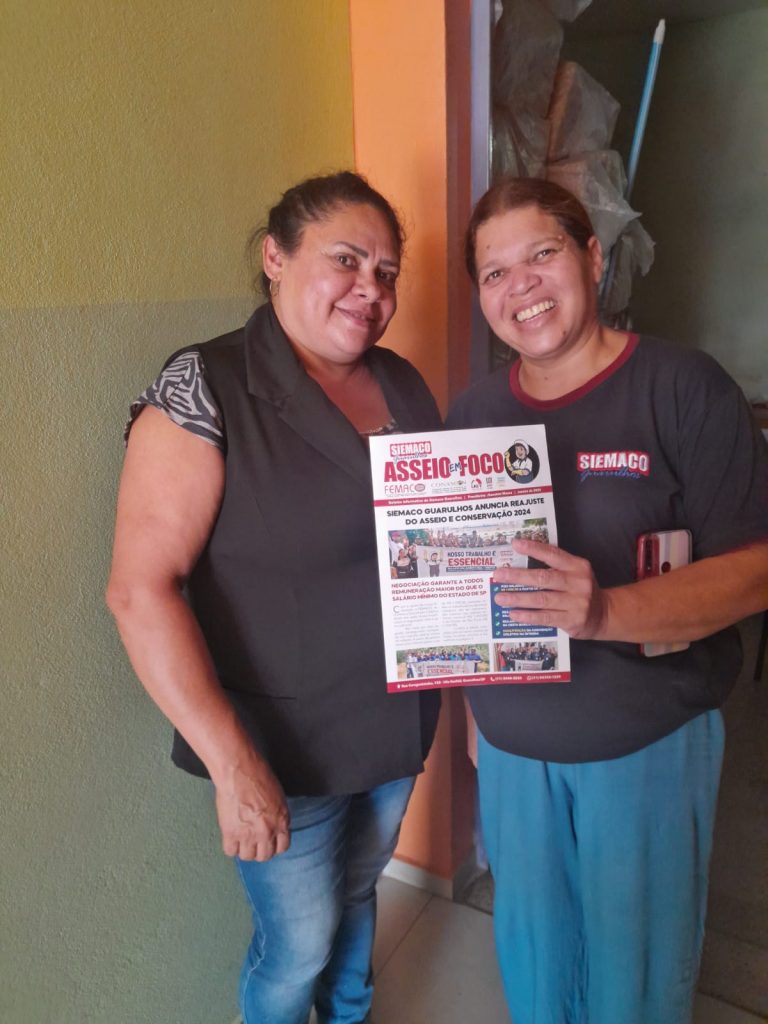Durante os meses de janeiro e fevereiro, nossos assessores de base e dedicaram e percorreram os locais de trabalho, para realização da entregando do informativo “Asseio em Foco”. Essa iniciativa tem como objetivo manter nossos trabalhadores informados sobre todos os direitos conquistados pelo Siemaco Guarulhos em parceria com nossa Federação Femaco.
