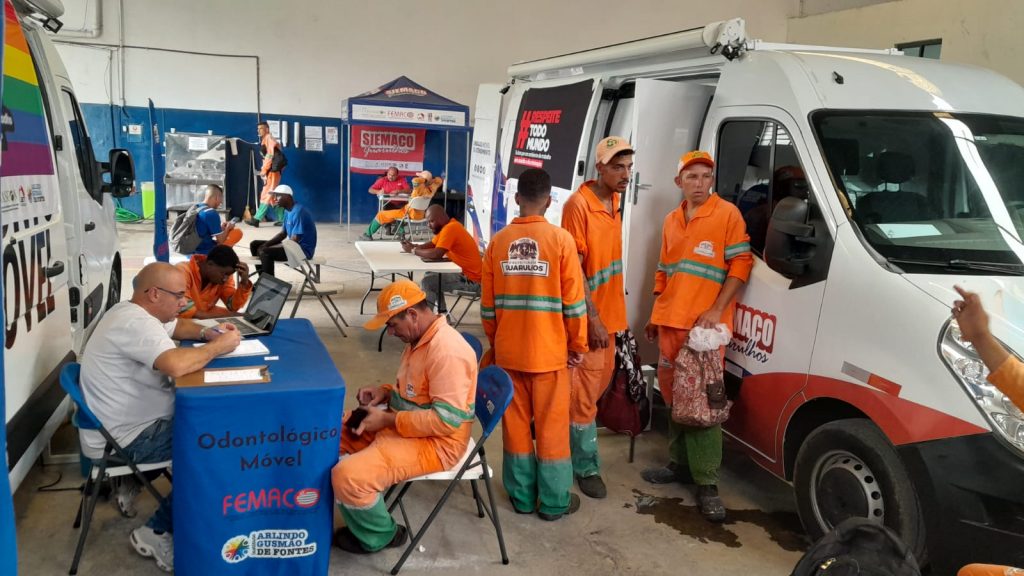 No dia 08 de abril, mais de 36 atendimentos médicos e 27 atendimentos odontológicos foram realizados pela iniciativa “Saúde na Pista” do Siemaco Guarulhos, com parceria do Instituto Arlindo Gusmão, levando cuidados diretamente aos trabalhadores do Consórcio Guarulhos Sustentável, no posto Cumbica.