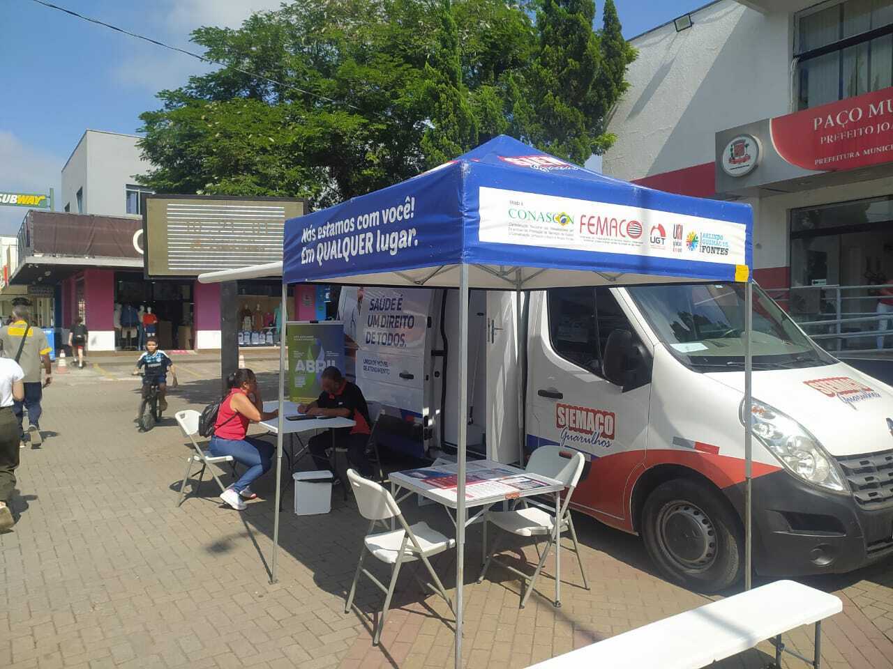 No dia 10 de abril, foi a vez dos trabalhadores de Santa Isabel, em receber atendimento diretamente em seu posto de trabalho, as empresas Ravena e Osesp receberam a van da saúde do Siemaco Guarulhos e a Van Odontológica da FEMACO.