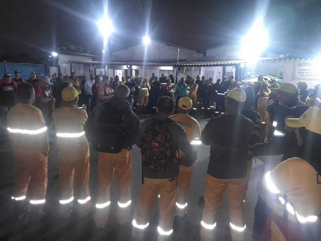 Logo pela manhã, estivemos reunidos em todas as garagens nos municípios de Santos, Guarujá, São Vicente, Cubatão, Praia Grande e Bertioga, que fazem parte da Empresa Terracom Construção. Nosso objetivo foi informar os trabalhadores sobre a sugestão do Tribunal: um reajuste de 4.8% nos salários e o congelamento dos benefícios até maio de 2025. Além disso, concordamos com a “Cláusula de Paz” até o dia 15/07/2024, conforme determinação do Tribunal de Justiça.