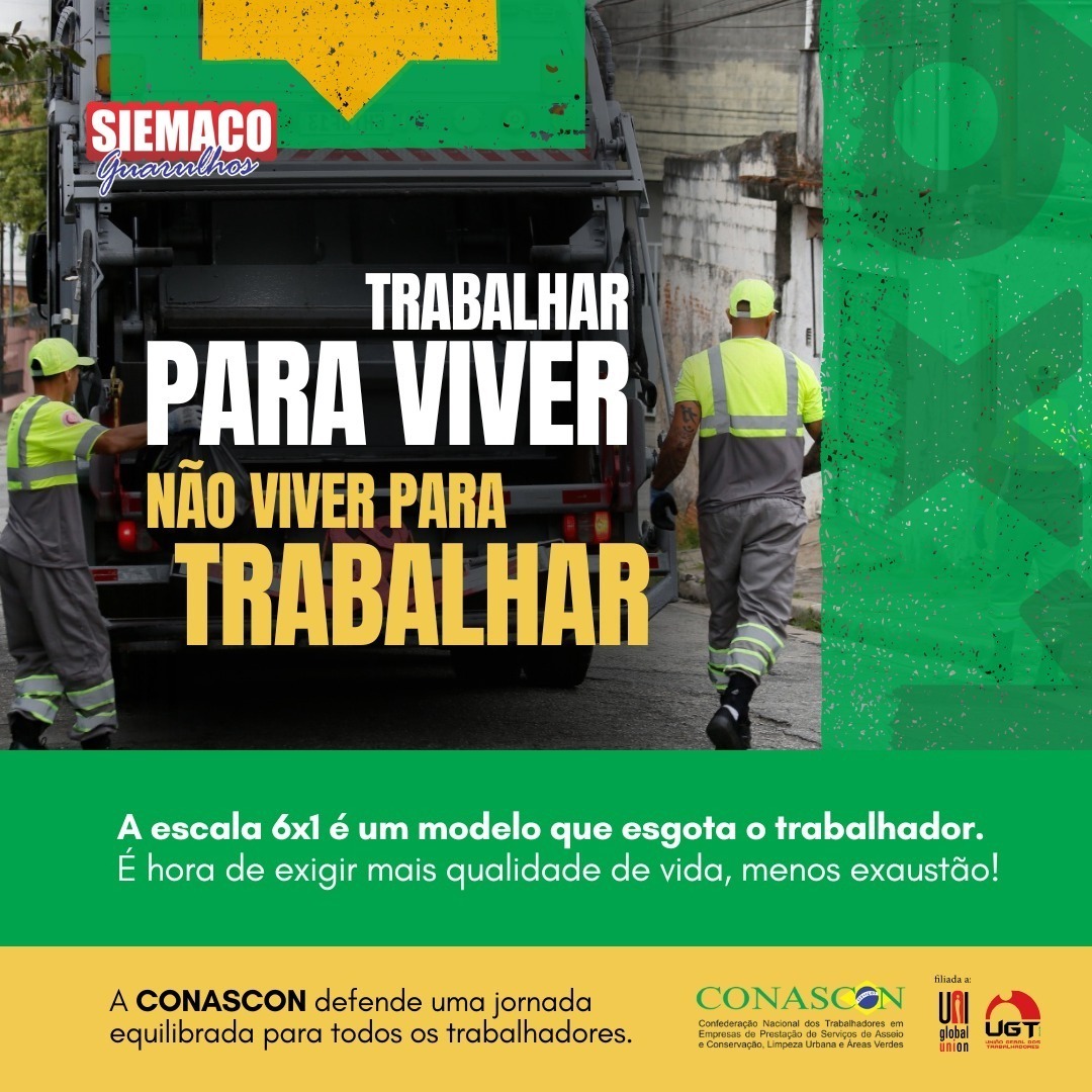 A escala 6×1 é um modelo que esgota o trabalhador, prejudicando sua saúde física, mental e o convívio com a família. Nós, do Siemaco Guarulhos, ao lado da Conascon, defendemos uma jornada de trabalho mais justa e equilibrada. Chega de exaustão!