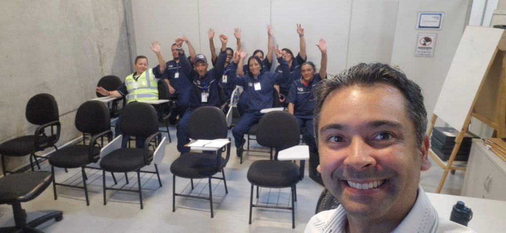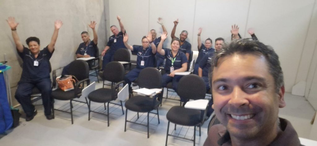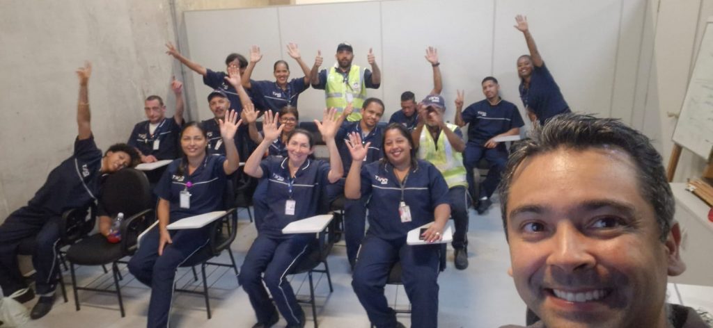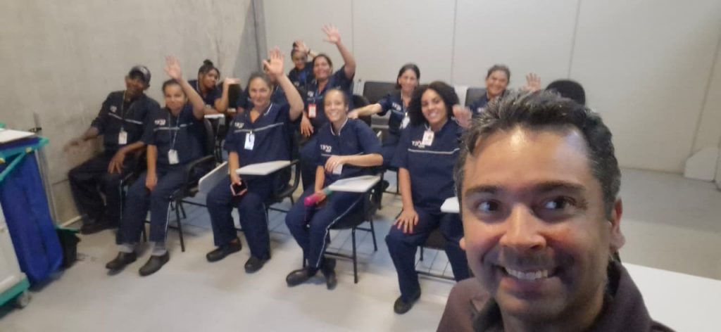 A atividade, realizada em parceria com a empresa Onet, contou com a presença de mais de 80 trabalhadores, divididos em 5 turmas participaram ativamente de um momento de reflexão, escuta e aprendizado. A palestra foi conduzida por Daniel Ramos, psicólogo, Master Coach e especialista em Programação Neurolinguística (PNL), profissional amplamente reconhecido por sua abordagem sensível, prática e conectada à realidade dos trabalhadores.
