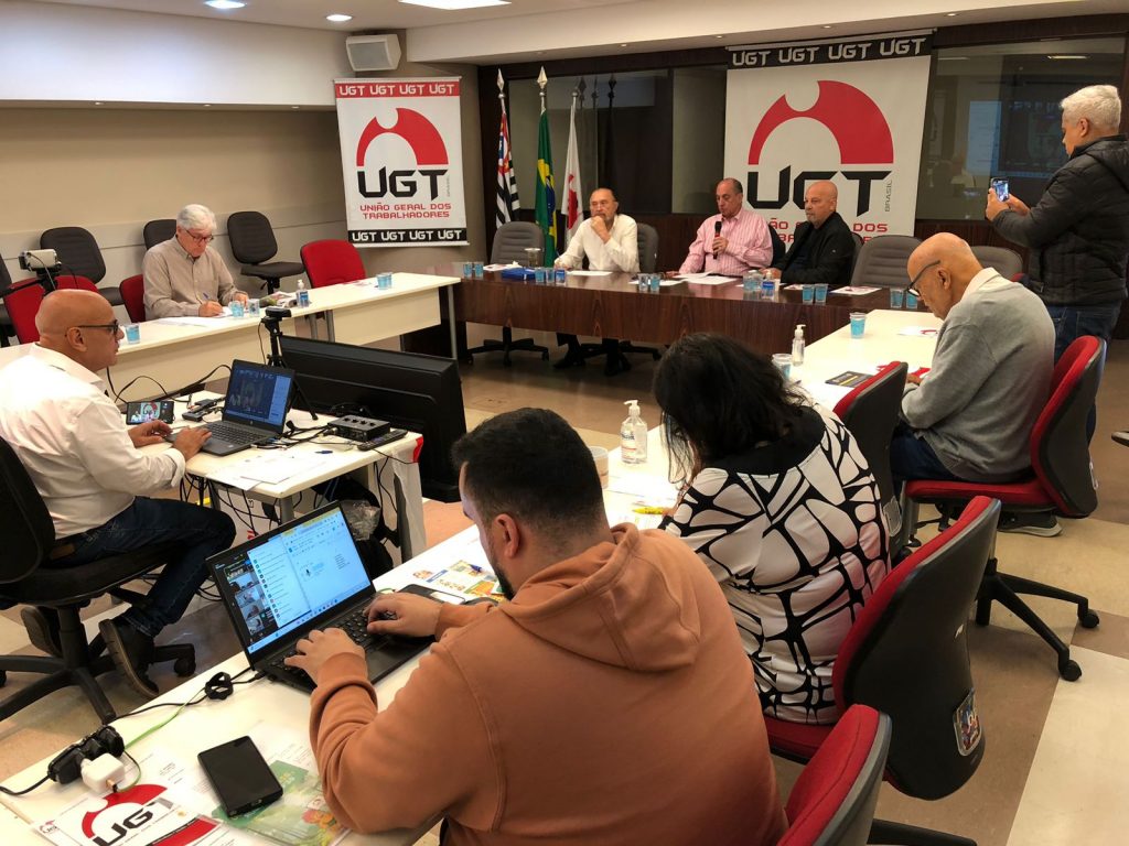 Nesta terça-feira, 27 de maio, a União Geral dos Trabalhadores (UGT) promoveu uma importante reunião com presidentes das UGTs estaduais, realizada de forma híbrida e conduzida pelas principais lideranças da central: Ricardo Patah (presidente), Roberto Santiago (vice-presidente) e Canindé Pegado (secretário-geral). O encontro reuniu representantes de todas as regiões do país e teve como objetivo discutir pautas estratégicas e urgentes do mundo do trabalho, em um momento marcado por intensas transformações econômicas, políticas e sociais.
