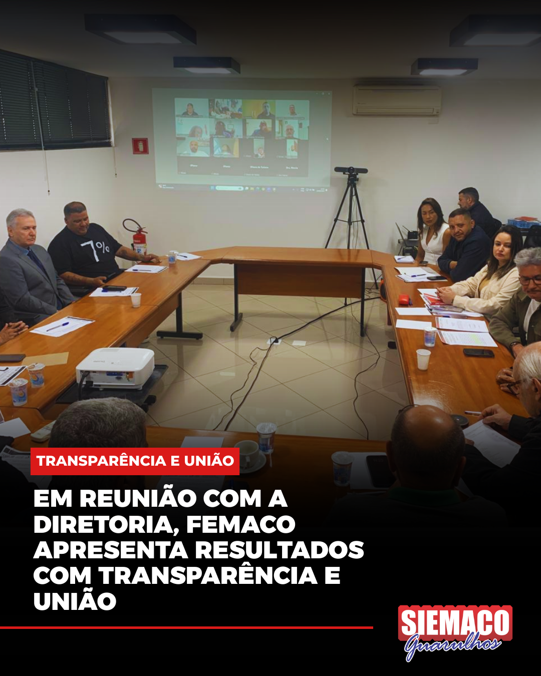 No dia 19 de agosto, Jhonatan Moura, esteve presente na reunião de diretoria de apresentação do balanço anual da Femaco, realizada com representantes dos sindicatos filiados.