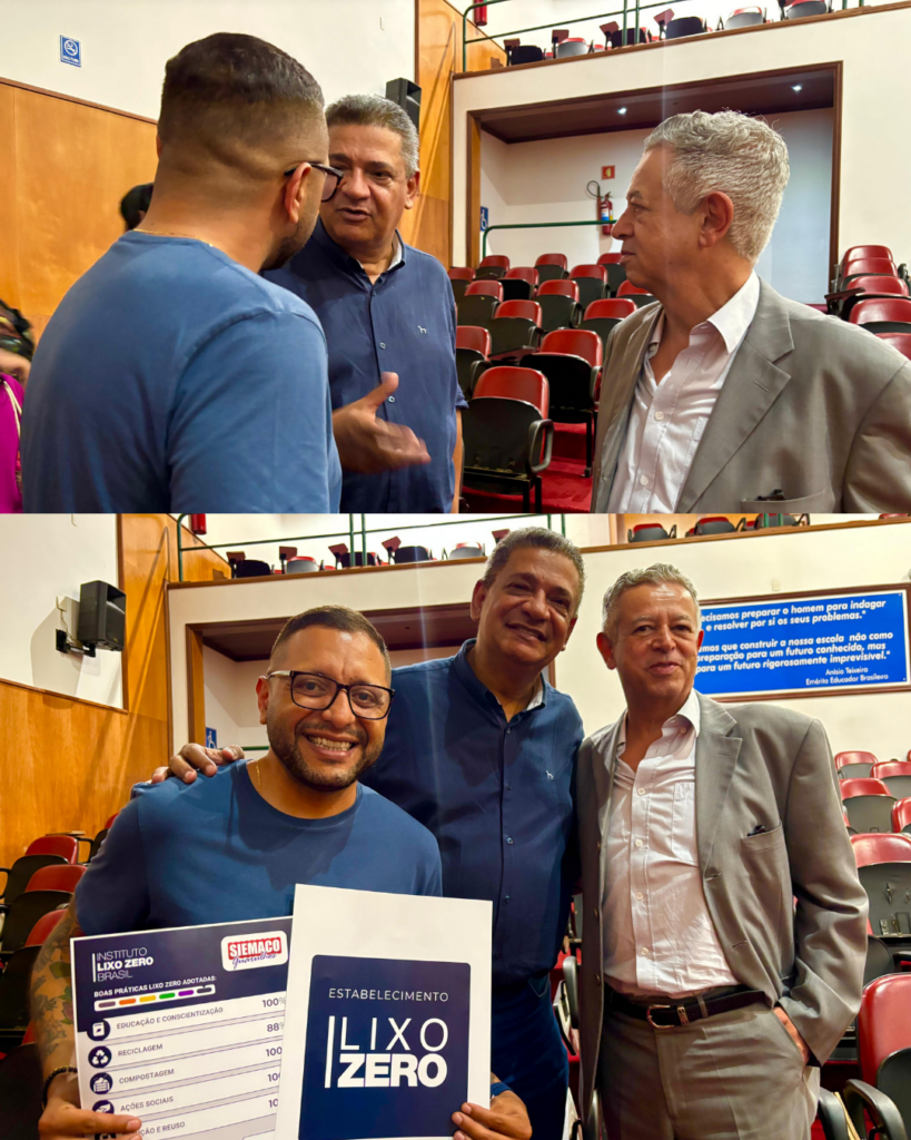 Na última sexta-feira, 17 de outubro, participamos da abertura da 9ª Semana Lixo Zero, realizada na Faculdade FIG-Unimesp, em Guarulhos. Durante o evento, recebemos oficialmente o Selo Lixo Zero, concedido pelo Instituto Lixo Zero Brasil um reconhecimento histórico que nos torna o primeiro sindicato do Brasil certificado como sustentável.
