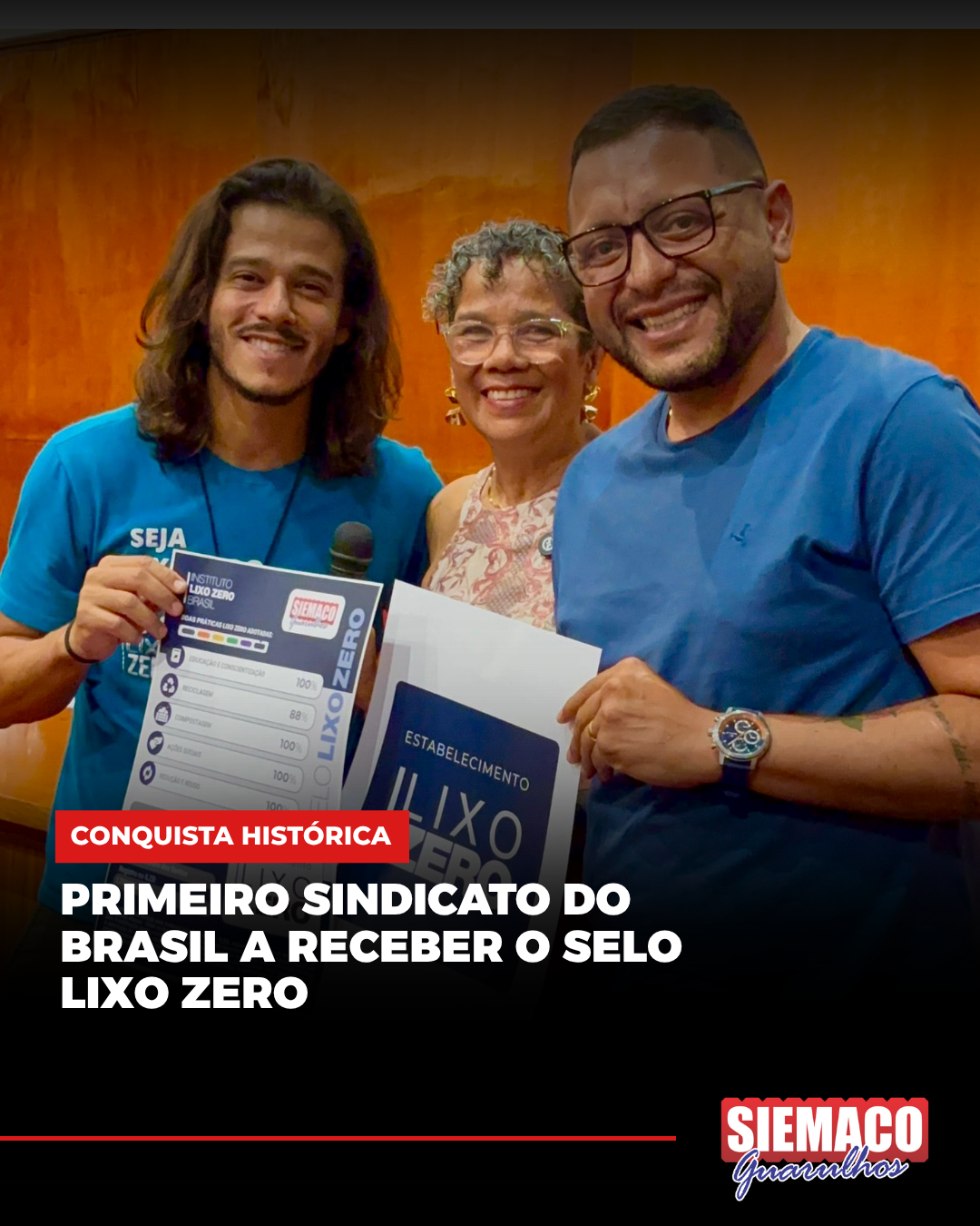 Na última sexta-feira, 17 de outubro, participamos da abertura da 9ª Semana Lixo Zero, realizada na Faculdade FIG-Unimesp, em Guarulhos. Durante o evento, recebemos oficialmente o Selo Lixo Zero, concedido pelo Instituto Lixo Zero Brasil um reconhecimento histórico que nos torna o primeiro sindicato do Brasil certificado como sustentável.