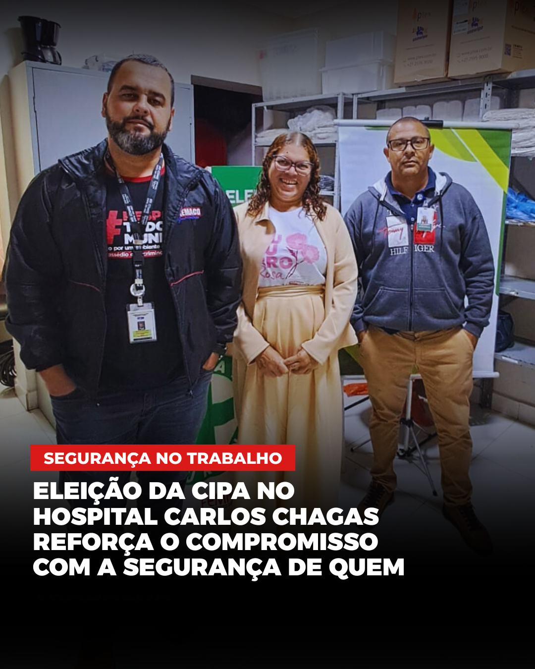 Home Notícias Siemaco ELEIÇÃO DA CIPA NO HOSPITAL CARLOS CHAGAS REFORÇA O COMPROMISSO COM A SEGURANÇA DE QUEM TRABALHA.