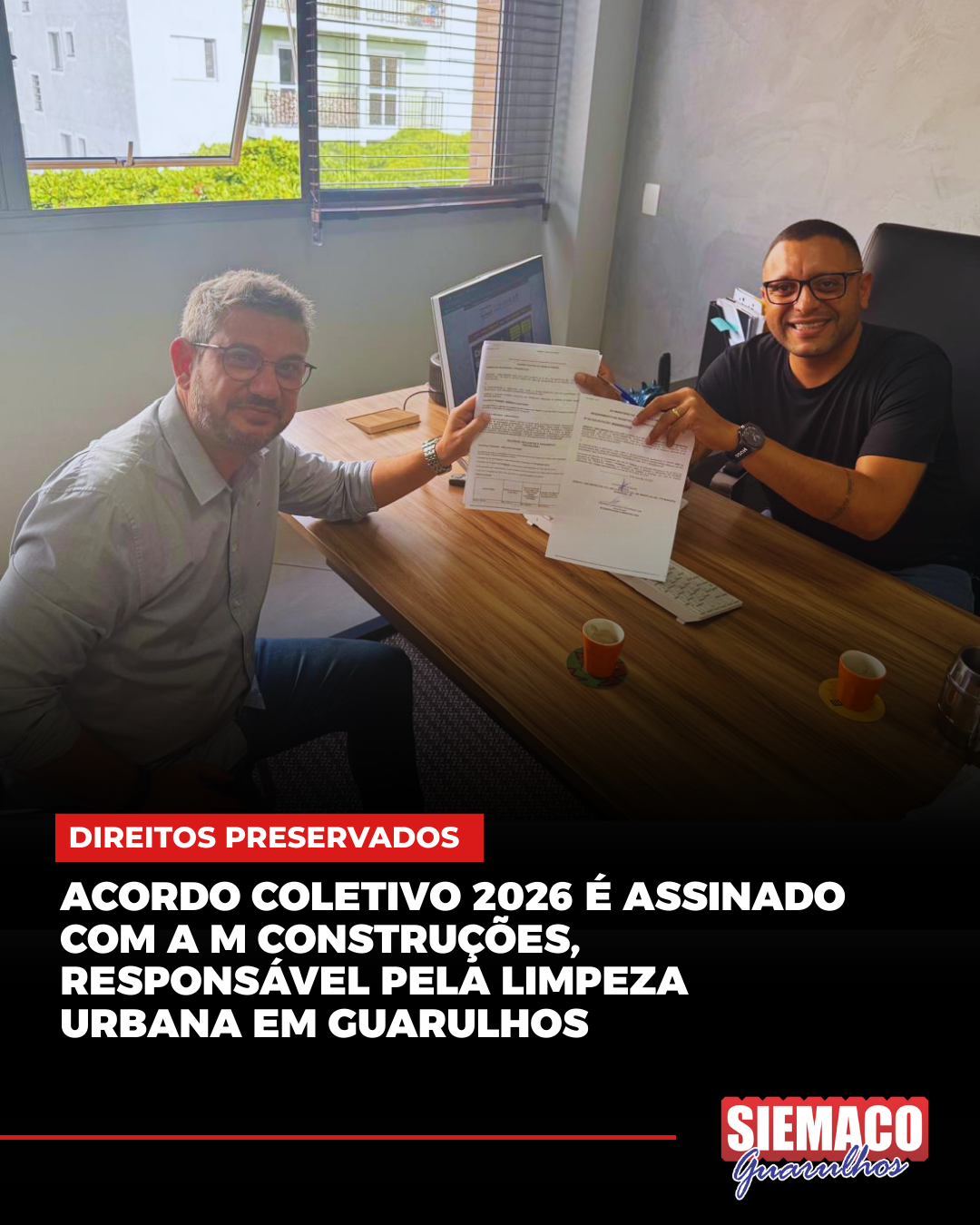 Home Notícias Siemaco ACORDO COLETIVO 2026 É ASSINADO COM A M CONSTRUÇÕES, RESPONSÁVEL PELA LIMPEZA URBANA EM GUARULHOS