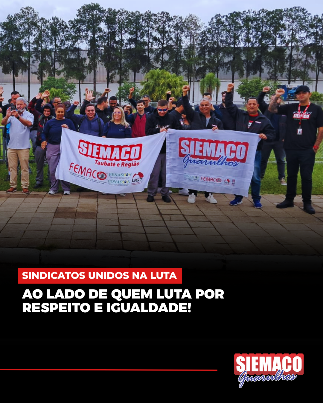 Seguimos ao lado do Siemaco Taubaté e de toda a categoria! Porque trabalhador unido é trabalhador respeitado em Guarulhos, em Taubaté e em todo o país.
