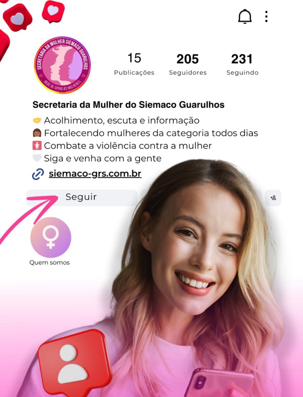 SECRETARIA DA MULHER DO SIEMACO GUARULHOS AGORA TEM PERFIL PRÓPRIO NO INSTAGRAM