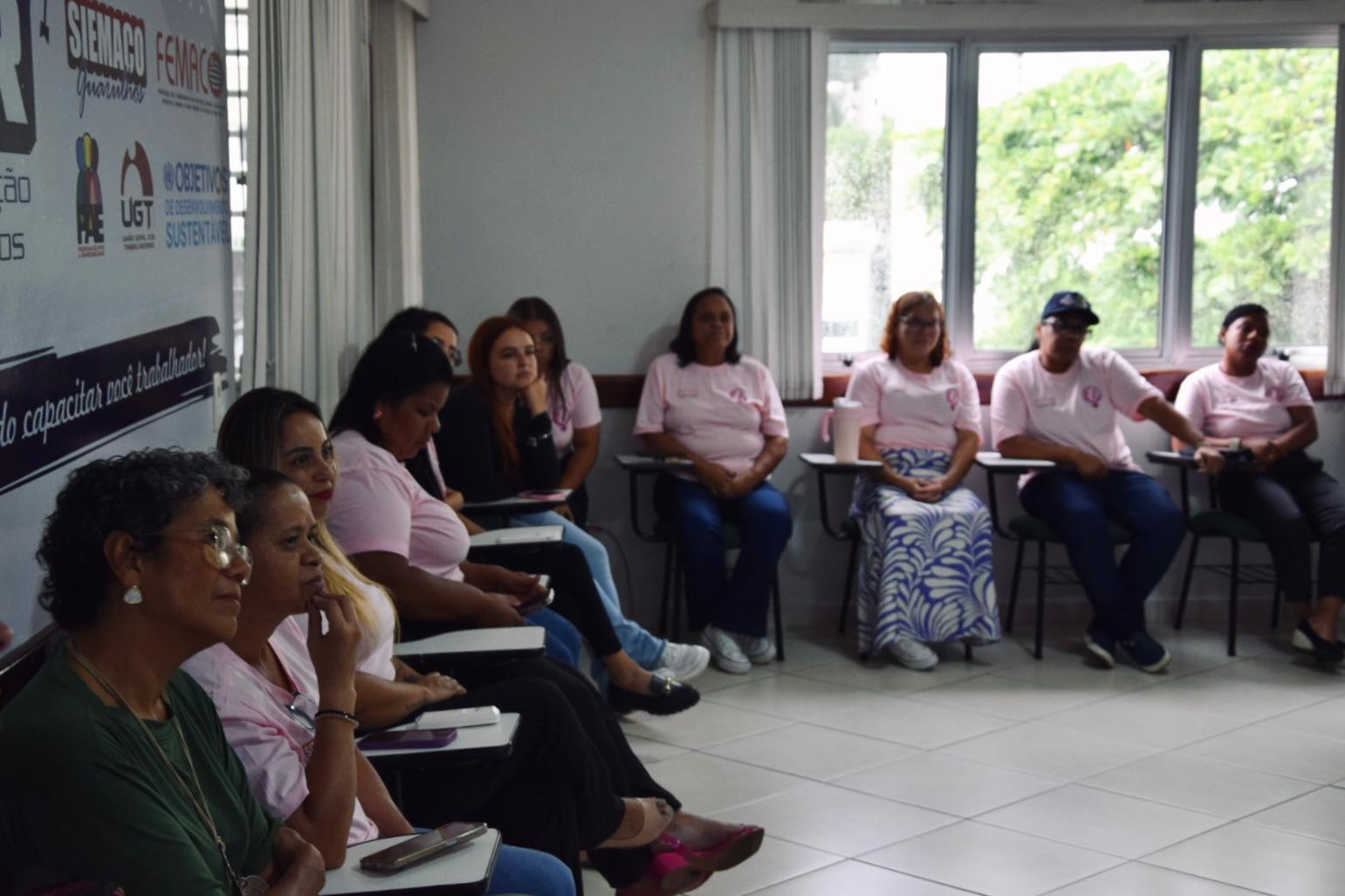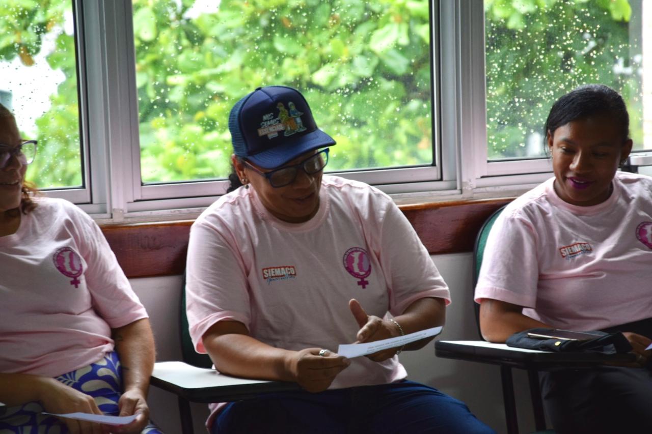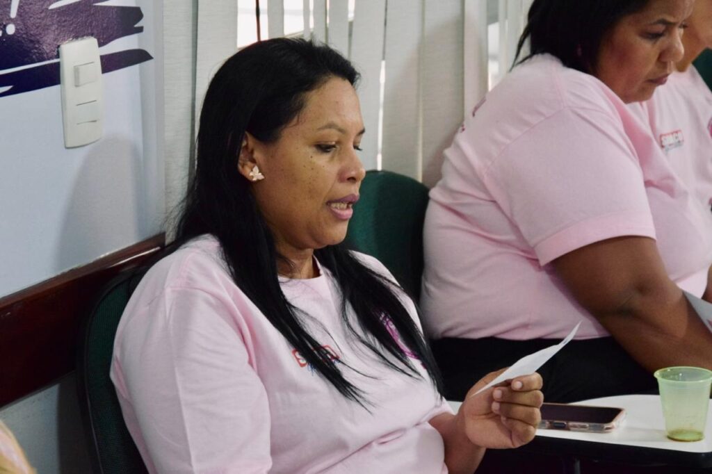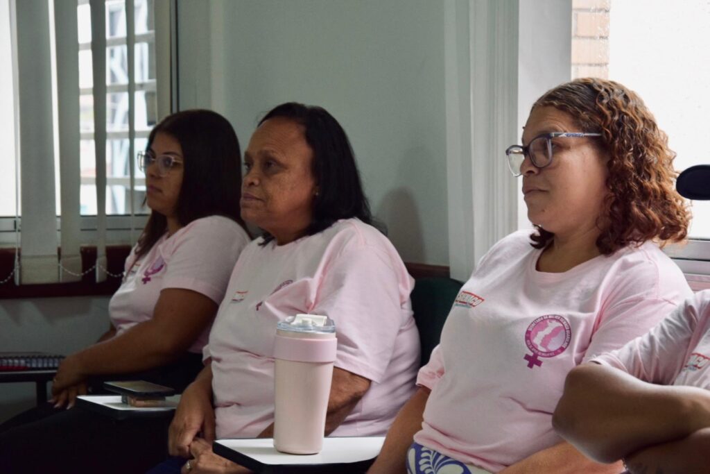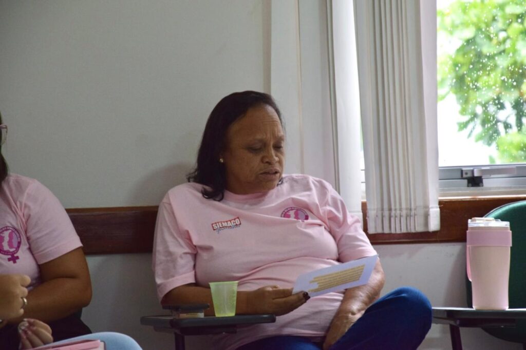 Durante o encontro, realizamos uma roda de conversa com lideranças femininas do movimento sindical, evidenciando como iniciativas voltadas à informação, ao acolhimento e ao fortalecimento das mulheres têm gerado impacto concreto na categoria.