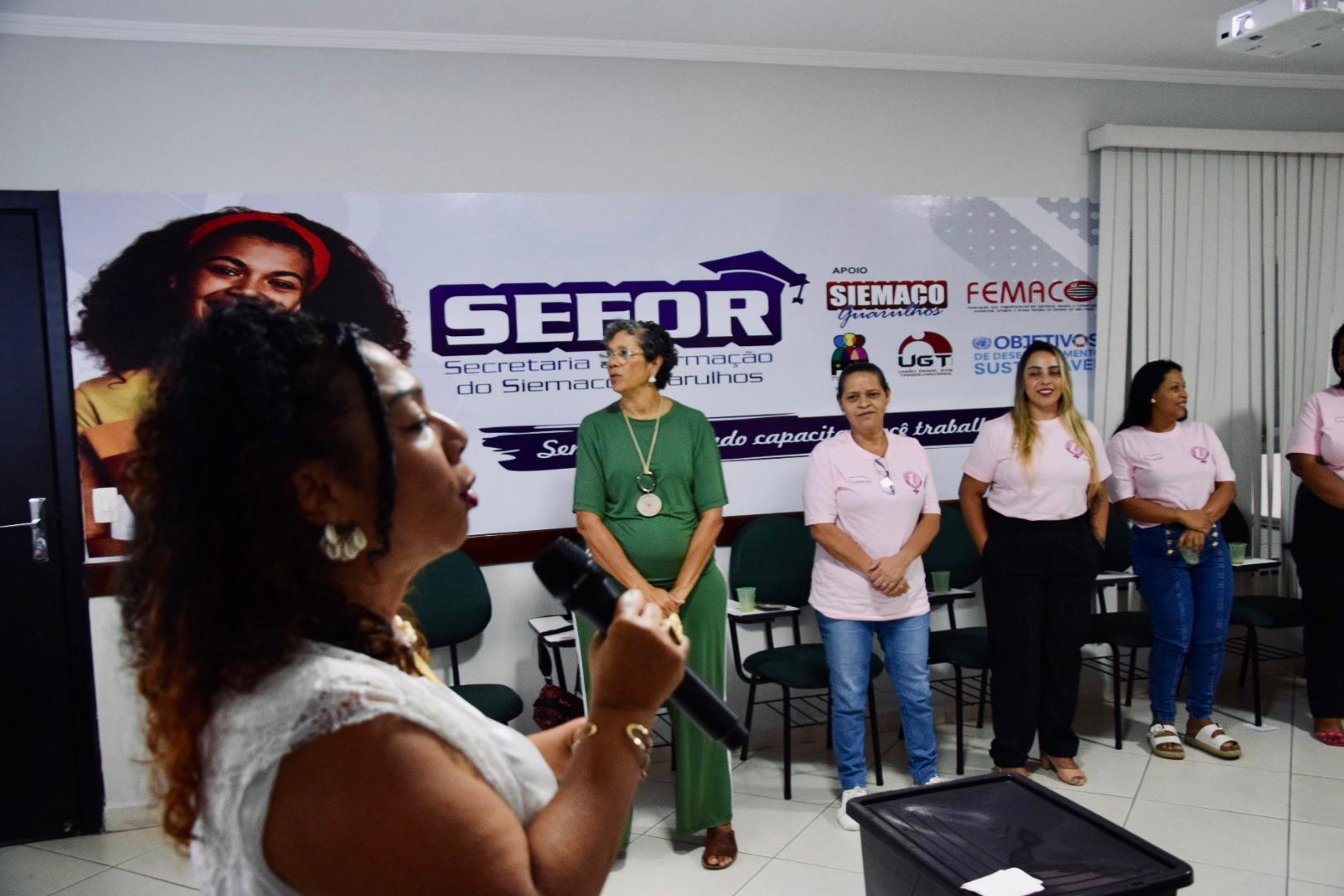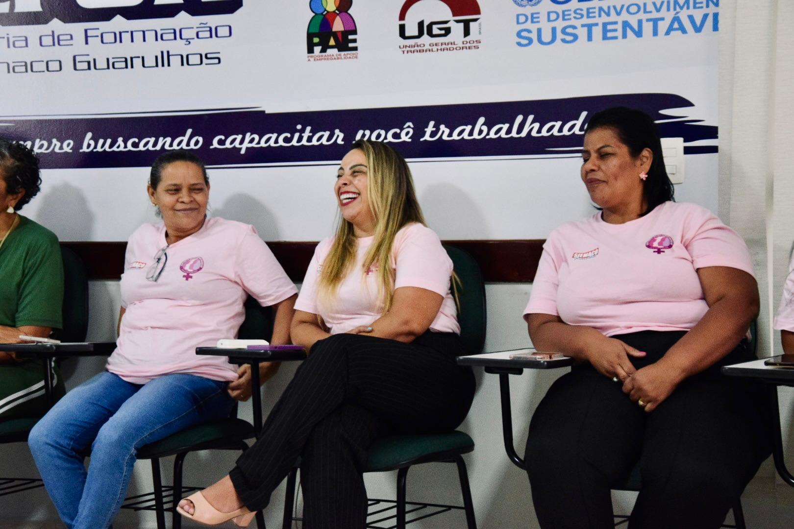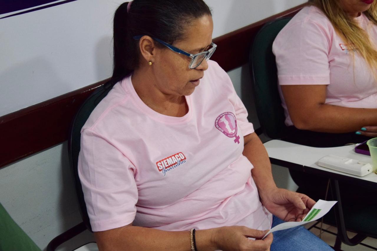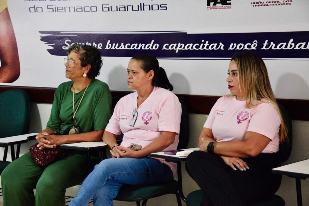 A roda de conversa contou com a presença de importantes lideranças do movimento sindical, entre elas Maria Isabel, representante da Femaco, Débora, da UGT, e Regina Moreira, que participou como palestrante trazendo reflexões sobre o protagonismo feminino no mundo do trabalho e no movimento sindical.
