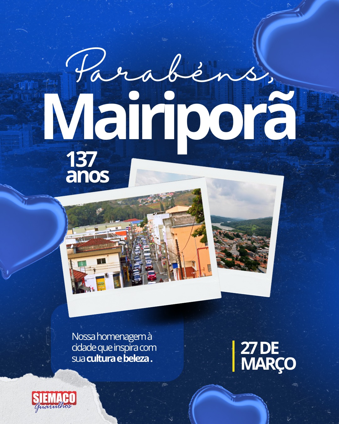 Hoje celebramos mais um ano de história, desenvolvimento e trabalho em Mairiporã.