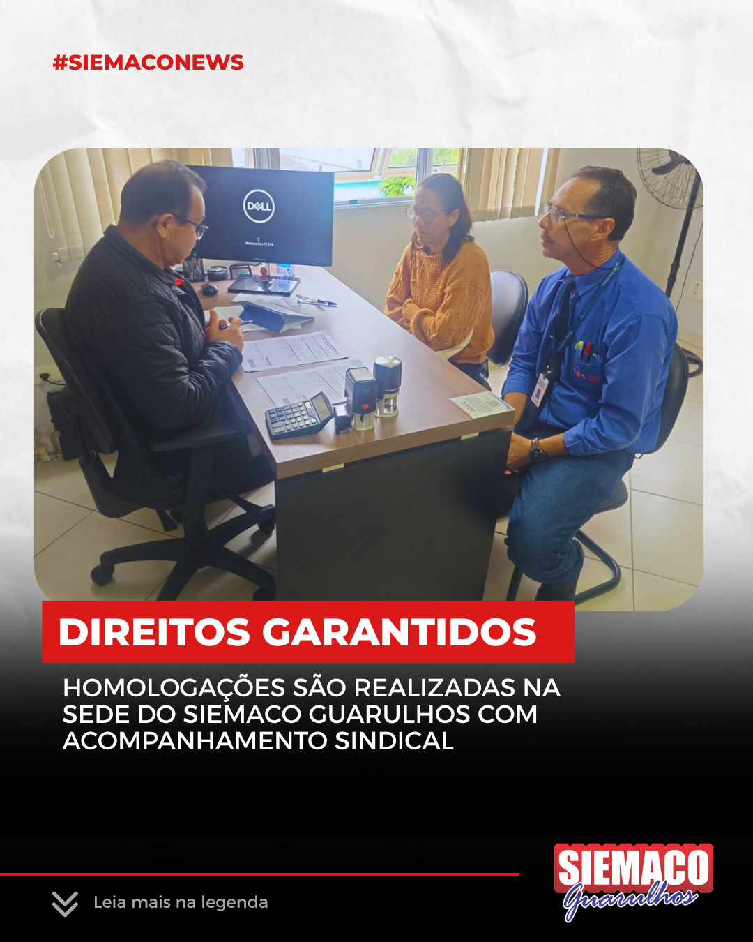 HOMOLOGAÇÕES SÃO REALIZADAS NA SEDE DO SIEMACO GUARULHOS COM ACOMPANHAMENTO SINDICAL