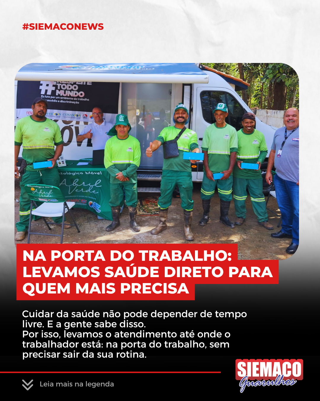Por isso, levamos o atendimento até onde o trabalhador está: na porta do trabalho, sem precisar sair da sua rotina. Porque quem está na correria do dia a dia muitas vezes acaba deixando o cuidado de lado e é aí que a nossa atuação faz a diferença.